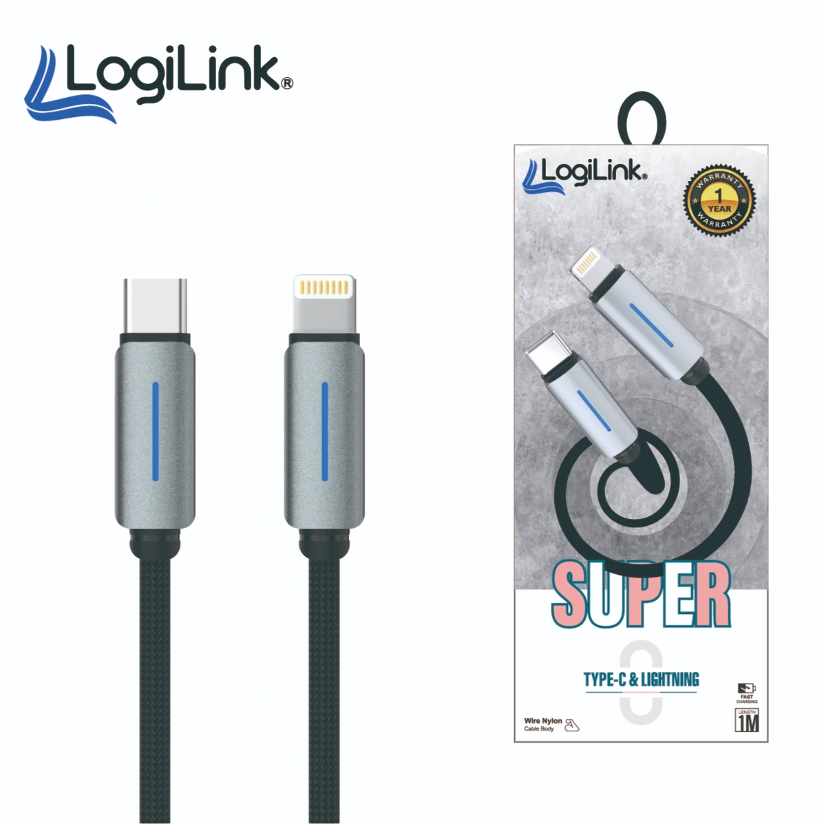 Logilink Type C to Lightning Nylon Fast Charging Data Cable with Light 1m (1 Year Warranty)